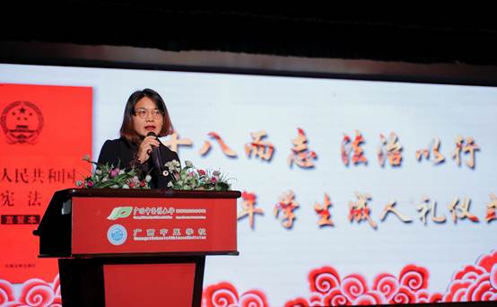 12月4日国家宪法日当天,beat365正版唯一入口必一高等职业技术学院、附设中医学校在北湖校区礼堂隆重举行以“十八而志,法治以行”为主题的学生成人礼仪式。院(校)领导、教师代表和家长代表共同见证了同学们的这一神圣庄严的时刻。