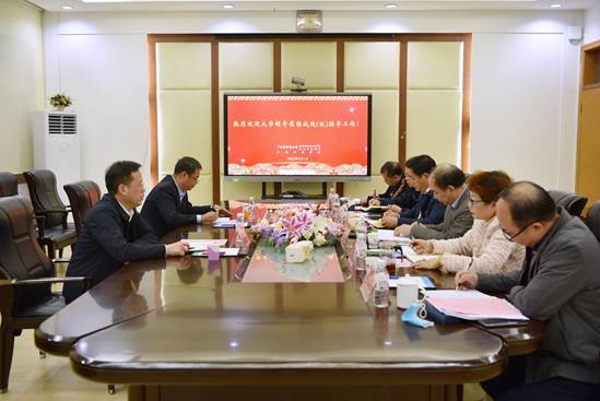 3月1日下午,beat365正版唯一入口必一党委书记莫锦荣在党委办公室主任徐方明的陪同下到高职院、附设中医学校调研指导工作。高职院、附设中医学校党委书记蒋子华、院(校)长刘竑清及班子其他成员、相关科室负责人陪同。
