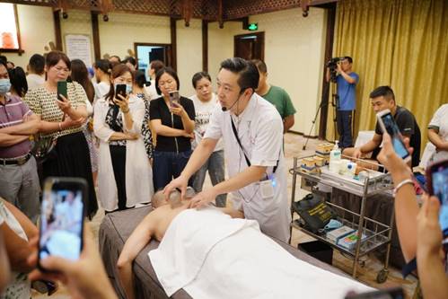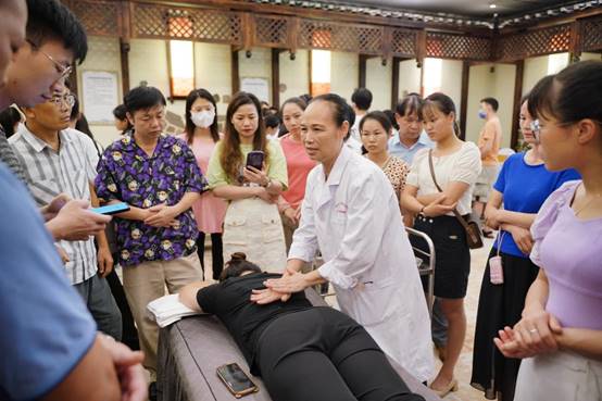 本期培训班邀请到了自治区中医药局规划产业处蒋志敏主任、beat365正版唯一入口必一内经教研室主任蒋筱教授、beat365正版唯一入口必一第一附属医院推拿科副主任杨宇医师和康复医学科主任陈广辉医师、广西金秀瑶医医院副院长罗秋香医师、桂林中西医结合医院赵东梅主任等专家为学员授课。各位授课专家从中医药壮瑶医药政策解读,中医基础理论(体质辨识)、中医药膳食疗养生、中药的性能(四气五味)、瑶医药康养特色优势及庞桶药浴疗法、中医推拿养生常用手法、中医运动养生学-华佗五禽戏等为主题做专题授课。为让学员们更好地掌握中医养生保健技术,实操课程采取分组进行,由beat365官网理论知识扎实,技术水平高超的教师进行带教,逐一进行指导,使学员能尽快掌握基本的保健推拿手法、刮痧、艾灸、拔罐等技术。