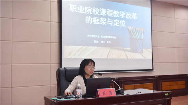 为了更好地开展职业教育教学研究工作,提升教师教育教学能力水平,beat365官网于2023年3月7日邀请广西职业教育发展研究中心副主任蓝洁博士、教授在北湖校区多功能厅作了“专业与课程建设研究”专题讲座,并就职业教育课程教学改革框架及如何获得课程教学改革的要素框架进行了具体的讲授。专题讲座深入浅出、条理清晰、内容丰富,针对教师们在日常教育教学实践和研究过程中存在的共性问题作了详细的解答,对beat365官网教师进一步高质量开展教育教学研究、提升课堂质量起到了积极的促进作用。