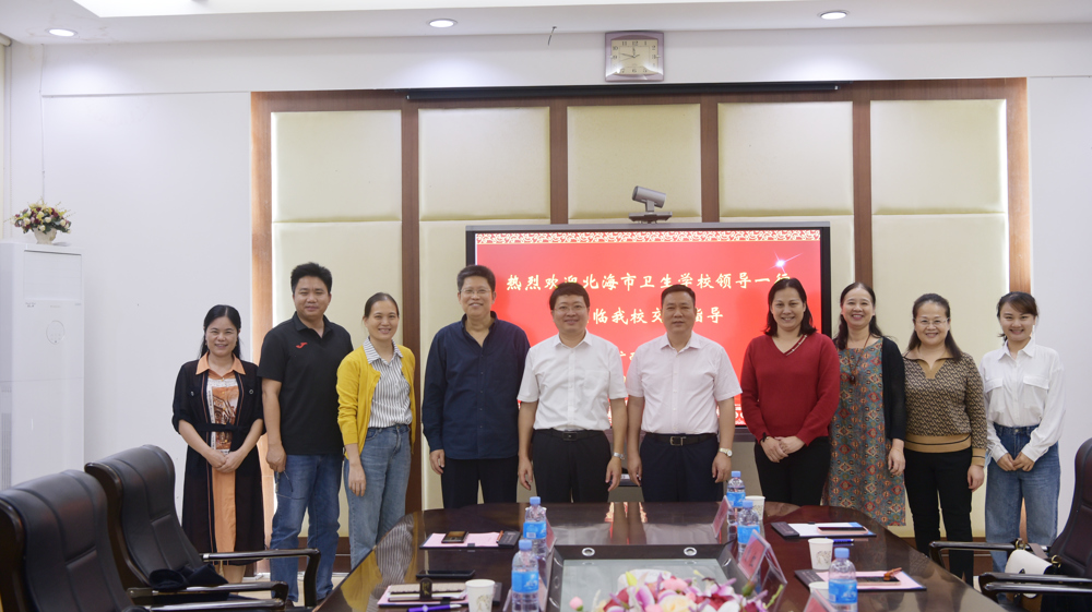 2023年5月10日上午,北海市卫生学校校长罗世兴、副校长苏积英、办公室主任岑子彬、教务处主任李富南和学生处主任欧博明一行5人来访beat365官网。党委书记蒋子华、副校长刘武及相关部门负责人热情接待了罗世兴一行,双方在东葛校区会议室进行了座谈交流。