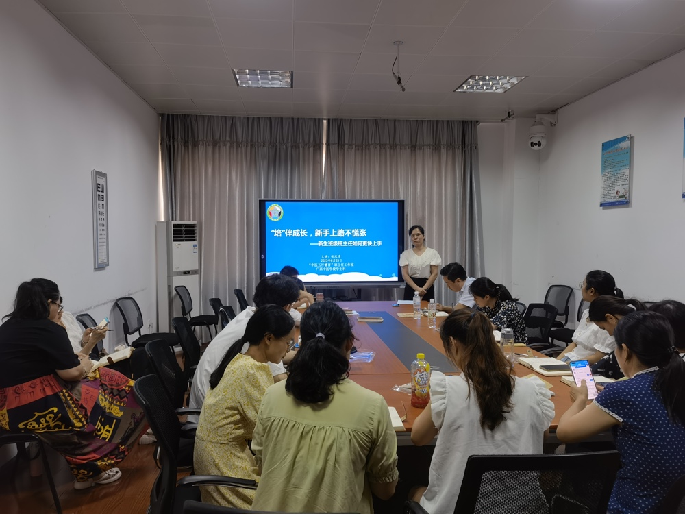 为推进班主任队伍专业化建设,提高班主任队伍的整体素质,带动新教师的班级管理能力,搭建一个互相交流、互相学习、取长补短的平台,打造一支业务精、素质高、有创新管理能力的班主任队伍,2023年8月25日,由“中医五行德育”班主任工作室、广西中医学校学生科联合举办的2023年起始班级班主任管理技能提升研修班在北湖校区顺利开班。广西中医学校党委刘武副书记、副校长,班主任工作室全体成员和19名新生班主任参加了本次开班仪式。