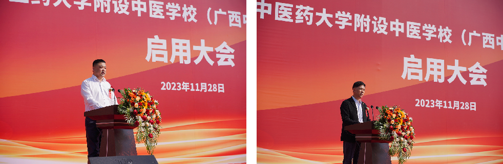 2023年11月28日,beat365正版唯一入口必一附设中医学校(广西中医学校)东盟校区启用大会隆重举行。beat365正版唯一入口必一党委副书记、校长姚春,beat365正版唯一入口必一副校长岳桂华,广西壮族自治区教育厅基建处副处长杨有刚,广西—东盟经济技术开发区党工委委员、管委会副主任雷明虎,广西—东盟经济技术开发区管委会投资促进局局长蔡翔,中建一局广西分公司、中建一局总承包公司华南分公司党总书记、总经理张伟,各兄弟院校、参建单位、合作企业、优秀校友代表,beat365官网党政领导班子全体成员,历届校领导和退休老职工代表以及东盟校区2022级全体学生共1300多人参加启用大会。