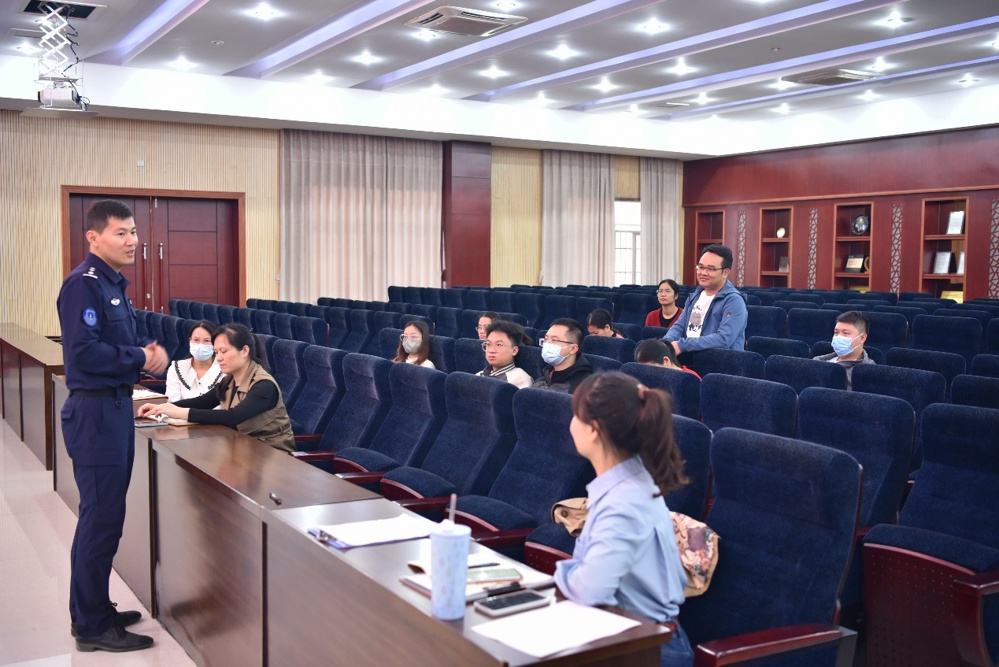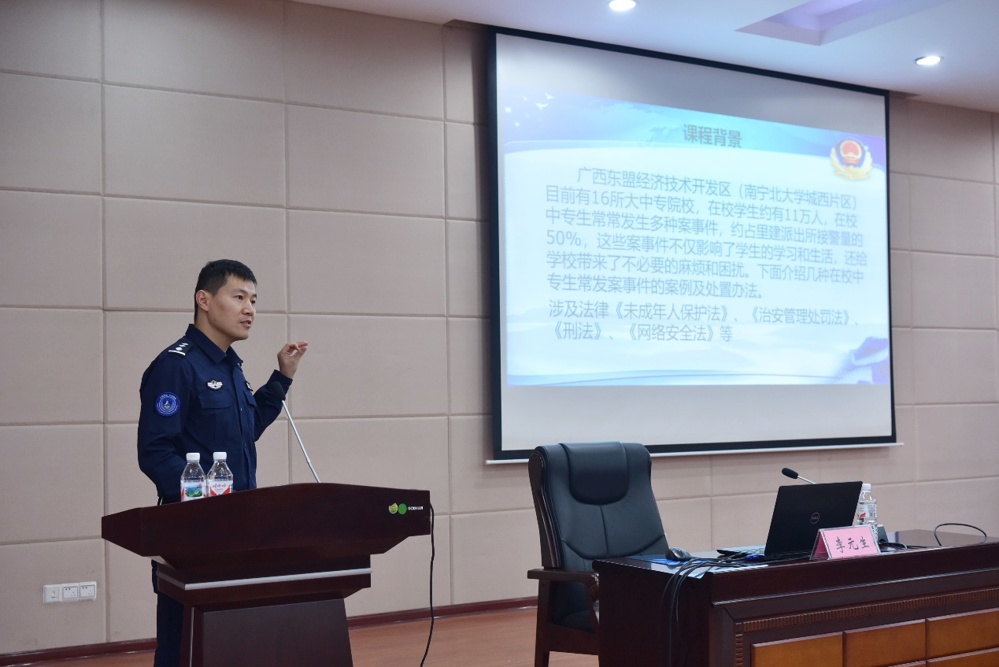为帮助班主任在发生校园案件或者紧急突发事件时能快速正确地处置,减少或者避免校园案事件的发生,2023年12月12日下午 15:30,beat365官网“中医五行德育”班主任工作室邀请了beat365官网东盟校区辖区派出所,南宁市公安局里建派出所二级警长、东盟公安分局团支部书记、南宁市公安警校兼职教官李元生警官到beat365官网北湖校区开展了“校园常见案事件及应急处置”讲座。“中医五行德育”班主任工作室全体成员、“青盾”校园法制教育工作站成员、全体班主任、学生科老师一起参加了讲座。