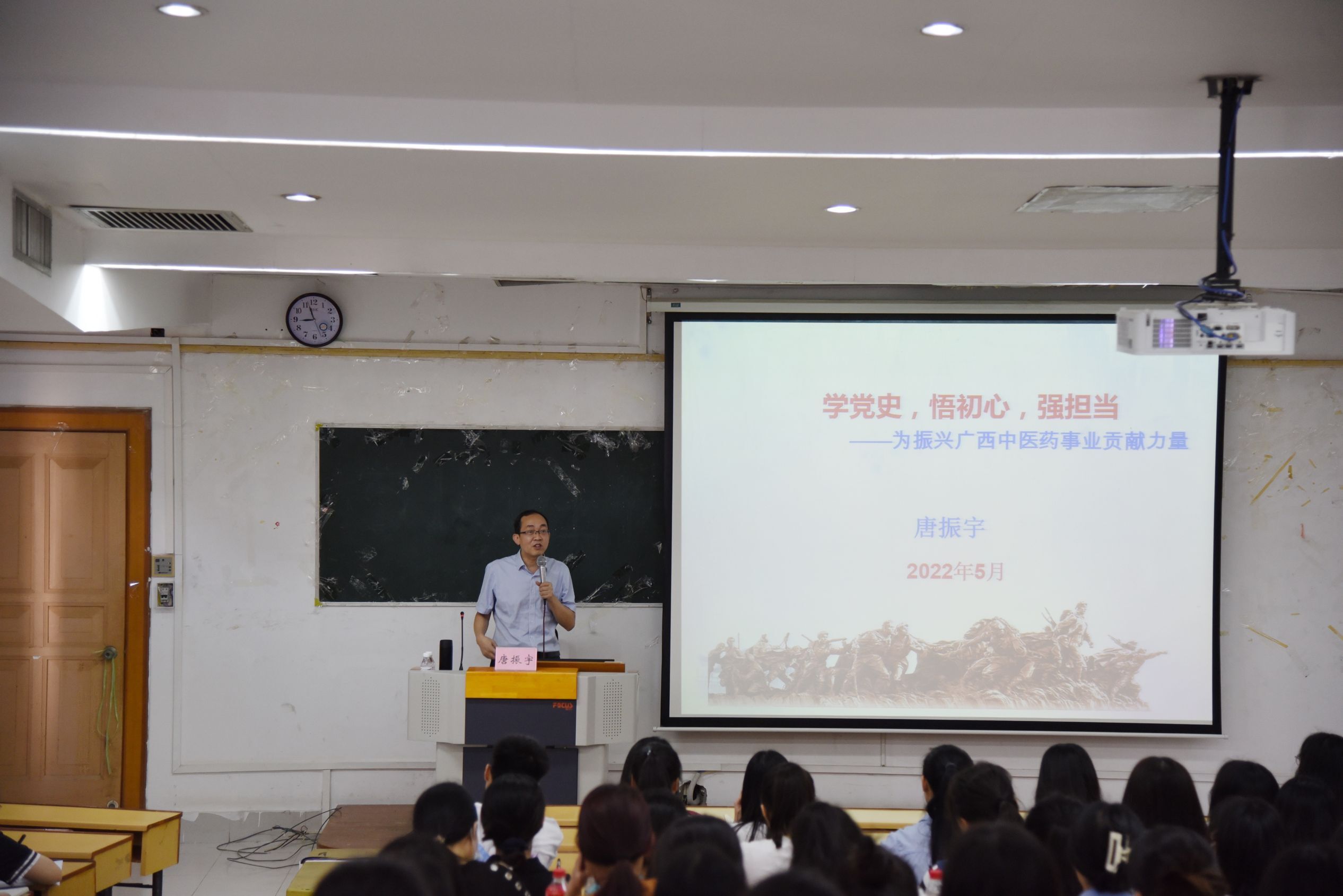 培训班上,大学党委组织部部长唐振宇讲授了《学党史、悟初心、强担当》,大学纪委副书记李月发讲授了《筑牢拒腐防线 建设“清廉桂中医”》,马克思主义学院副教授黄静婧讲授了《中国共产党的领导地位是历史和人民的选择》专题党课,培训班还开设了《发展党员入党程序、流程和材料书写要求》课程,课堂上集中观看了《紧跟伟大复兴领航人踔厉笃行》专题片。