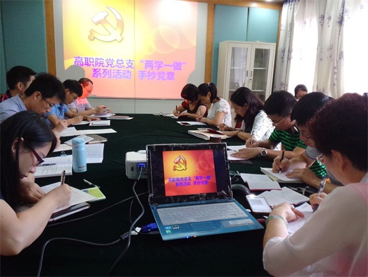 专题党课后,高职院全体教工党员一同开展了党员抄写新党章的学习活动。