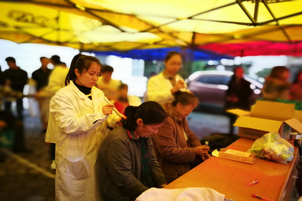 本次义诊过程中,虽说小雨绵绵,但我们的义诊点却情意浓浓,志愿者们为居民提供了免费测血压、健康咨询、艾灸、推拿按摩以及派送保健药品等服务,对居民们提出的健康问题耐心讲解,讲解怎样规范用药和预防保健等健康知识,发放健康教育宣传材料,同时现场进行推拿按摩、艾灸等治疗,受到了居民们的普遍赞扬。此次义诊活动共接待居民百余人,既检验了同学们医疗卫生知识和实际操作能力,又提高了居民的身体预防保健知识和健康意识,为医疗卫生事业贡献自己的一份力量。