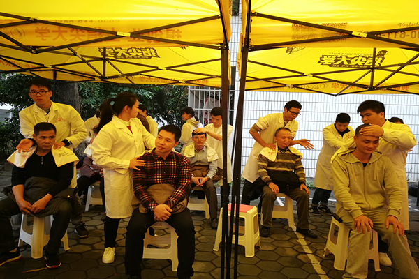 高职院学生志愿者为社区群众进行手法按摩