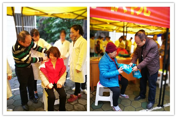 高职院黄勇副院长给社区群众做手法、送药品