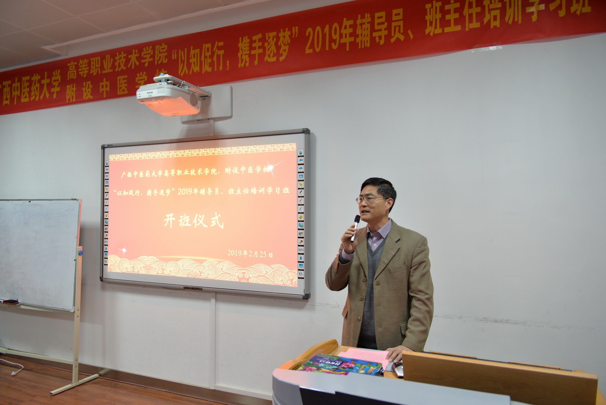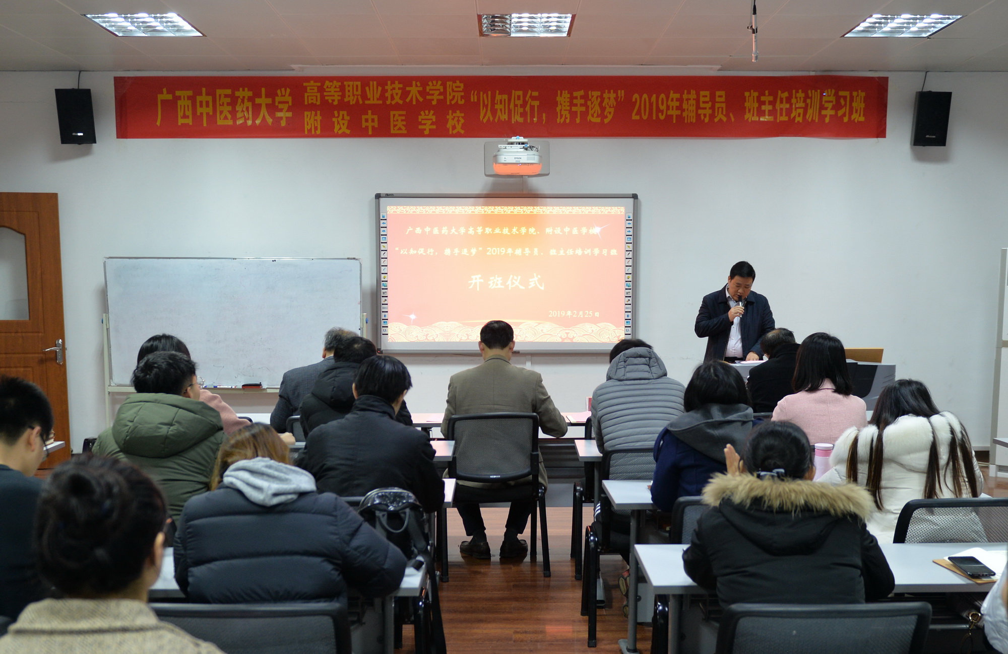 2月25日上午,高等职业技术学院、附设中医学校为期3天的“以知促行,携手逐梦”2019年辅导员、班主任培训班在北湖校区正式开班。beat365正版唯一入口必一党委副书记何并文出席开班仪式并作专题培训,高职院、附设中医学校党委书记蒋子华、高职院、附设中医学院(校)长刘竑清、副院(校)长黄勇出席仪式,40多人参加了培训。
