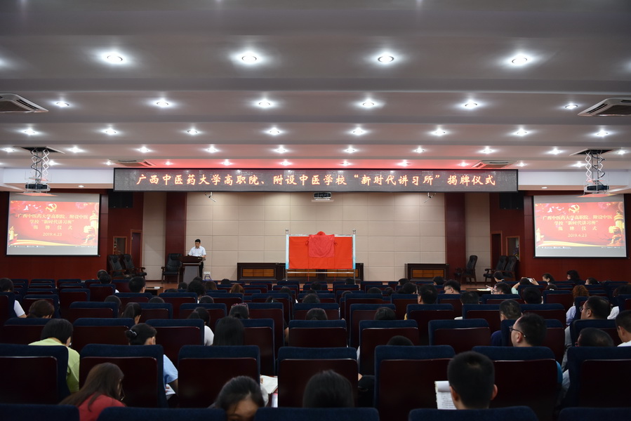 4月23日下午,高职院、附设中医学校在北湖校区多功能报告厅举行“新时代讲习所”揭牌仪式。高职院、附设中医学校领导班子、中层干部、全体党员和辅导员参加揭牌仪式。