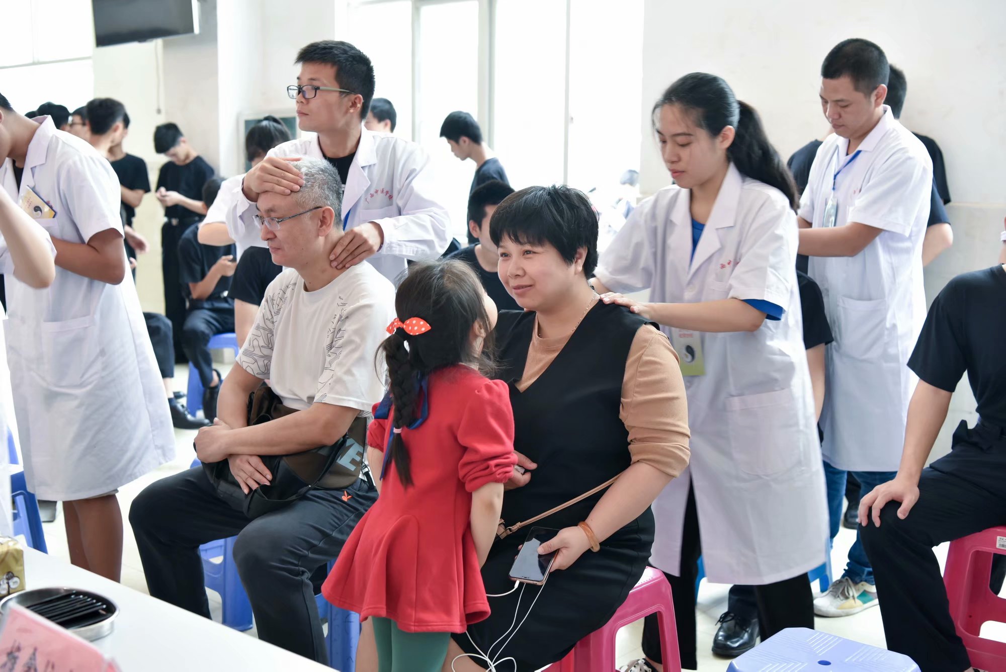 上午,参观者陆续到校,在院(校)师生的热情接待和引导下,有序地参观了临床护理实训中心、中医实训中心等教学科研实训场所。参观过程中,各个学生讲解员详细地向来访者介绍了实训室的基本情况,进行了成果演示,并与参观者进行了互动。主会场设置在礼堂,重点布置了中医药技能体验区、护理技能体验区、德育成果展区等区域。通过实训室的参观,推拿、拔火罐、急救护理、口腔护理、社团展示等体验与展示,让小朋友们更好的理解生命的意义、中学生更好的感受医护精神、附近居民更好的感受到职业教育的成果。