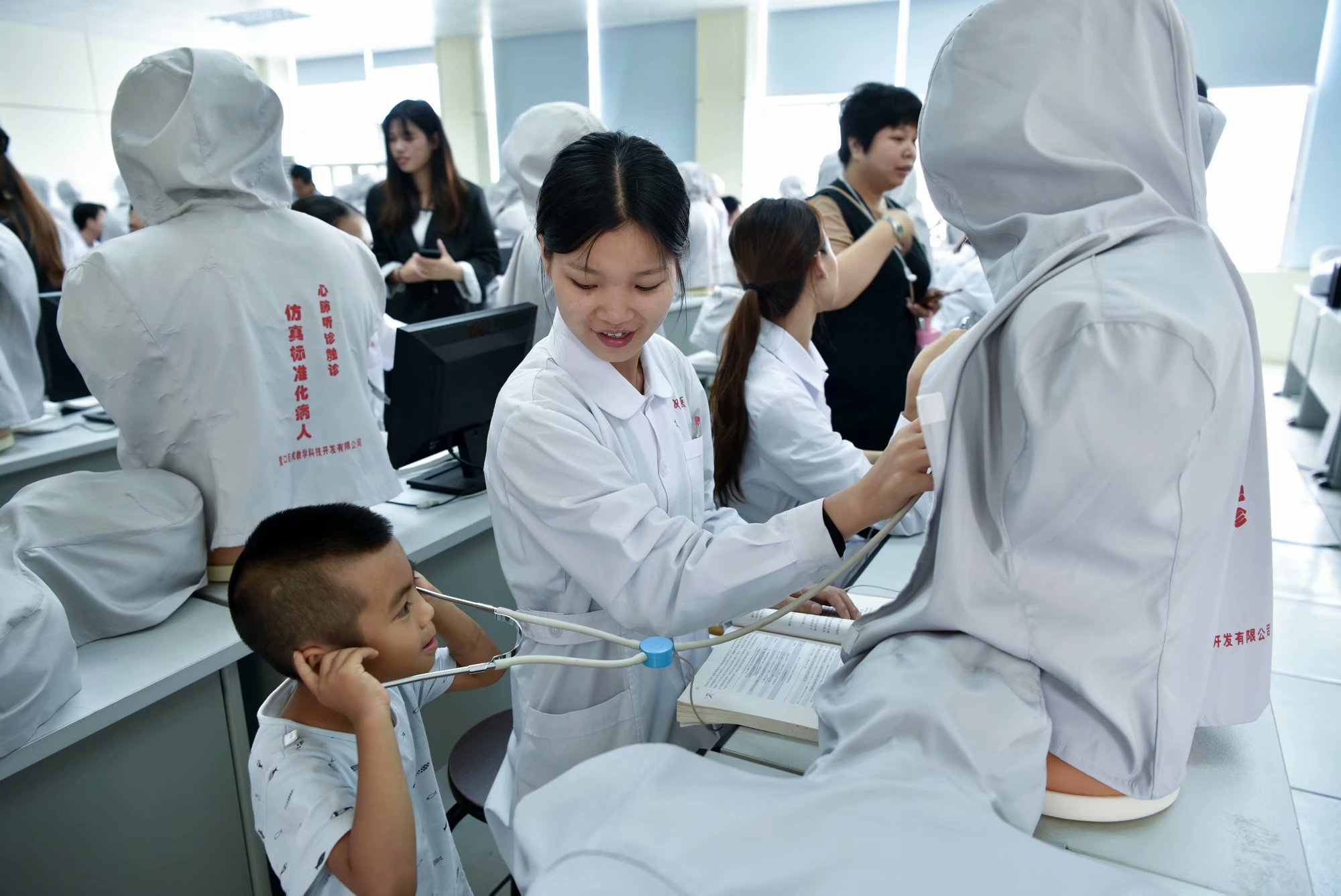 小朋友们体验心肺听诊