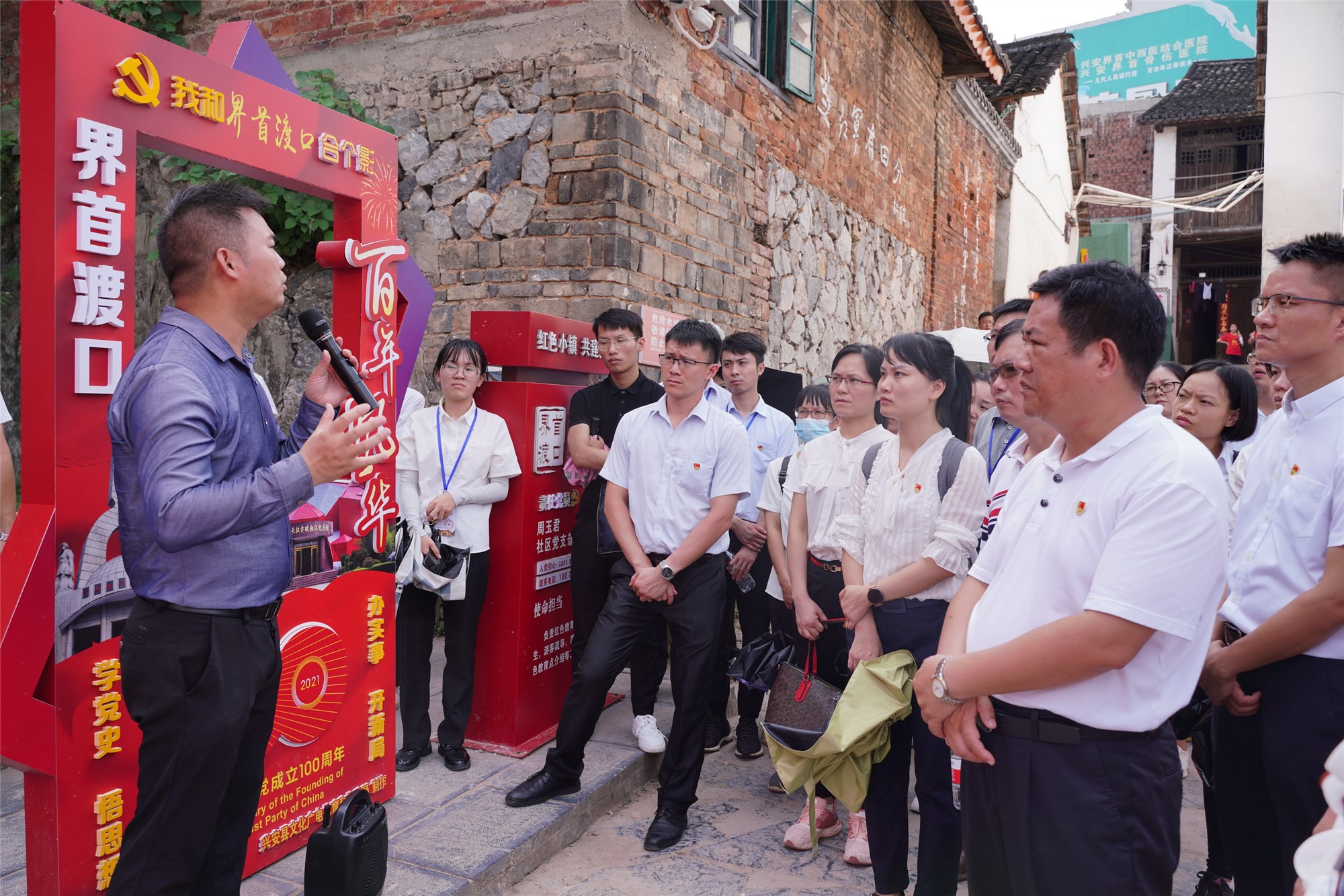 在现场教学中,全体学员到全州红军长征湘江战役纪念园,兴安县红军堂、界首渡口重走长征路,实地感悟湘江战役精神,向湘江战役红军烈士敬献小白花,重温入党誓词,瞻仰了“红军魂”雕塑等,仰望先辈背影,脚踏先烈脚步,体会如今幸福生活的来之不易。