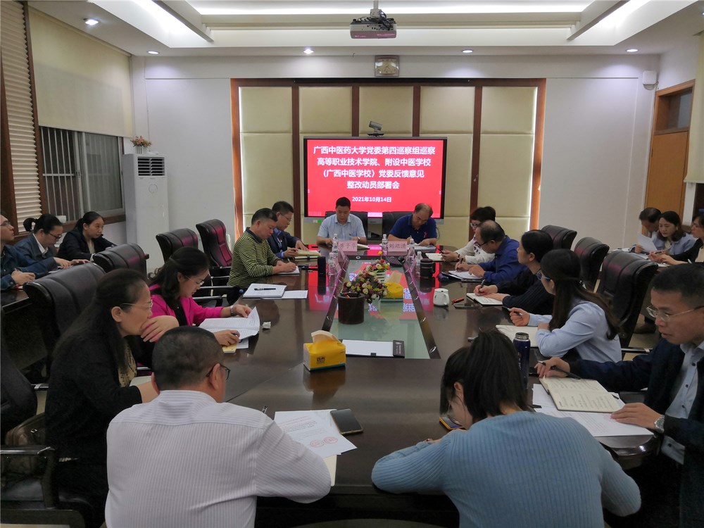 10月14日下午,高职院、附设中医学校党委召开beat365正版唯一入口必一党委第四巡察组巡察高职院、附设中医学校党委反馈意见整改动员部署会。高职院、附设中医学校党委书记蒋子华,院(校)长刘竑清,副书记、副院(校)长刘武,副院(校)长周琦、林原,纪委书记黄勇,全体中层干部、党支部书记参加会议。