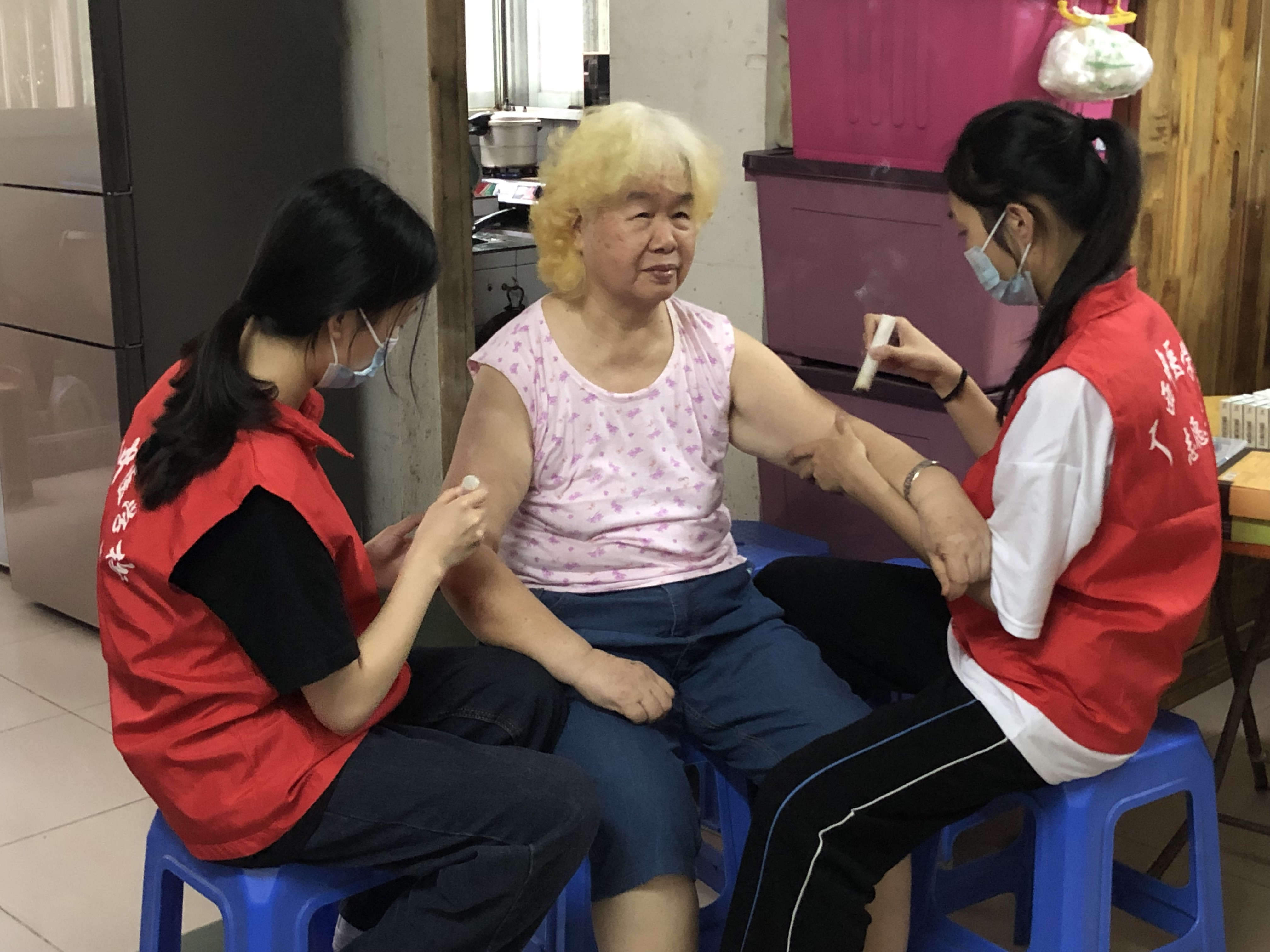 志愿者为居民进行艾灸