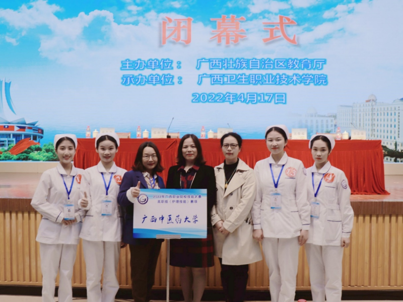 2022年4月,我院(校)分别派出选手参加由广西教育厅主办,广西卫生职业技术学院、广西农业职业技术大学、南宁市卫生学校承办的2022年广西职业院校技能大赛高职组《护理技能》、高职组《中药传统技能》、中职组《护理技能》赛项。根据比赛实施方案中的奖项设置,我院(校)派出的参赛选手获奖如下:杨生兰同学将荣获高职组《护理技能》赛项二等奖(指导教师:阳绿清),韦倩、苏彩霞和邓欣可三位同学荣获高职组《护理技能》赛项三等奖(指导教师:卢小菊和廖喜琳),李东霖同学荣获高职组《中药传统技能》赛项二等奖(指导老师:李健),李秀兰、蒋宁霞同学荣获高职组《中药传统技能》赛项三等奖(指导老师:曹音、罗统勇),王雅薇同学荣获中职组《护理技能》赛项二等奖(指导教师:杨颖蕾),唐莹莹同学荣获中职组《护理技能》赛项三等奖(指导教师:陈艳芳)。自2017年以来,我院(校)在这三赛项上多次获得一、二、三等奖的好成绩,也曾多次代表广西参与全国职业院校职业技能大赛的角逐。