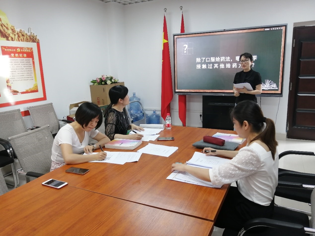 护理学基础教研室开展教研室活动 发布时间:2022-06-23 17:08:23 浏览次数: 次 【字体:小 大】 2022年6月21日下午,护理学基础教研室在自诚楼C501开展教研室活动,教研室主任兰艺主持本次活动,活动主题是临床教师新课试讲。来自广西国际壮医医院的黄美芳和周艳娜两位新教师试讲了“给药”这一章的部分内容,教研室的老师针对试讲情况提出了的意见和建议,指导新教师在教学环节应注意的问题。最后,兰主任对两位临床教师提出了二点要求:一是要充分备课,以最好的状态迎接自己的第一课;二是要学习运用现代化教学手段,提高教学水平。 黄美芳老师试讲 周艳娜老师试讲 分享到: 【打印正文】