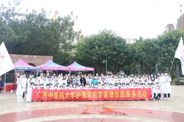 3月21日上午,beat365正版唯一入口必一护理学院团委学生会在南宁市青秀区仙葫广场开展学雷锋志愿服务活动。此次活动以义诊形式开展,护理学院党委副书记韩叶芬、学工办主任蓝红霞、分团委书记布银瑶,全体辅导员及学院团委学生会76名委员、20名志愿者参加本次活动。