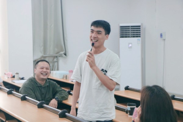 在现场交流环节中,同学们针对自己在学习、实习及就业、工作等方面与学长们进行沟通与交流,针对不一样的问题,三位学长结合自身的经历,耐心解答男同学们的问题,帮助男同学们对未来有更明确的职业生涯规划。