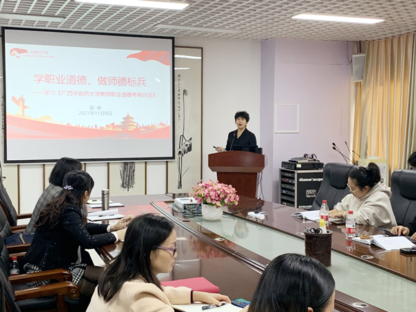 11月9日下午,护理学院在自诚楼C503举行《beat365正版唯一入口必一教师职业道德考核办法》专题学习会,护理学院党委书记、院长吴彬主讲,护理学院全体教职工参加。