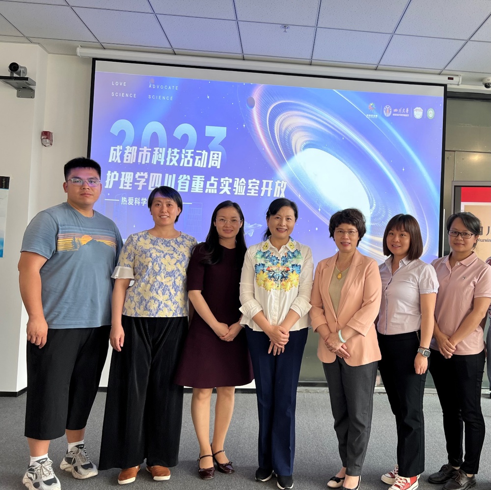 团队调研组认真聆听了华西护理创新研究中心主任胡秀英教授对护理学四川省重点实验室建设背景及历程的详细介绍,深入了解实验室建设工作情况。双方就实验室科研成果、社会服务与学科新成就、队伍建设与人才培养平台建设与运行、管理运行机制及开放交流活动进行了交流。随后团队聆听了护理临床研究方法、科学技术普及等专题科普讲座,参观了“护理+生物学”实验室、“护理+材料”研发实验室、“精准护理-临床护理技术”实验室。