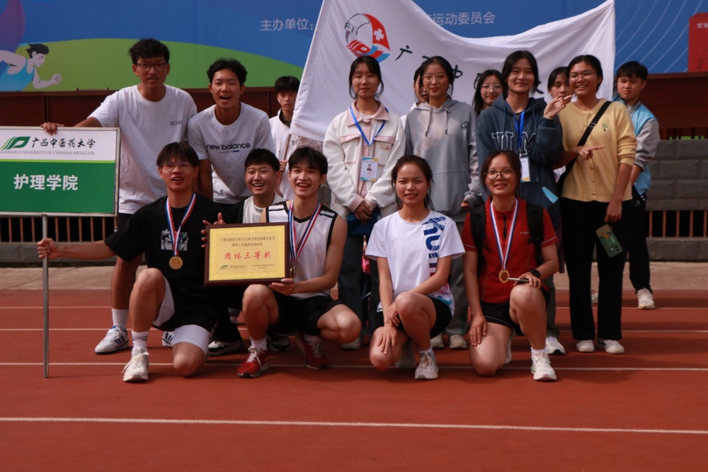 运动场上,护理学子们始终以朝气蓬勃的风貌、火一般的热情投入比赛,经过激烈的角逐,2023级护理学韦修森同学在男子三级跳远赛中获得第一名的优异成绩;2022级助产学专业韦家怡同学在女子400 米决赛中获得第三名的好成绩,护理学院荣获“团体三等奖”。
