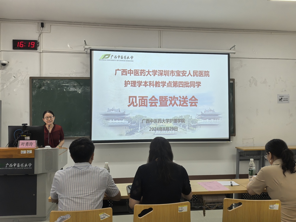 8月29日下午,护理学院在明秀校区举行学校深圳市宝安区人民医院联合护理学本科教学点第四批学生见面会暨欢送会。护理学院党委书记叶勇玲、院长韩叶芬、党委副书记龙春莉、学工处副处长赵斌、护理学院辅导员及14名学生出席会议。