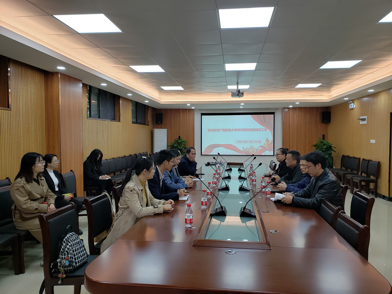 11 月19日上午,广西民族大学化学化工学院党委书记黄钦、院长谭学才带领教师代表和职能部门代表6人来beat365官网后勤处调研实验室危险废弃物管理工作,后勤处处长冯第林、副处长黎锦源以及处办、校管科、水电科等相关工作人员接待了客人。