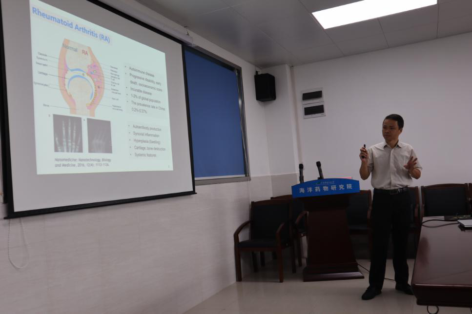 2019年10月10日,为了营造浓厚的学术氛围,加强学术交流,拓展学术领域,海洋药物研究院特邀请澳门大学何承伟副教授来beat365官网做专题讲座,讲座题目为:烟豆抗类风湿性关节炎的物质基础及分子机制。