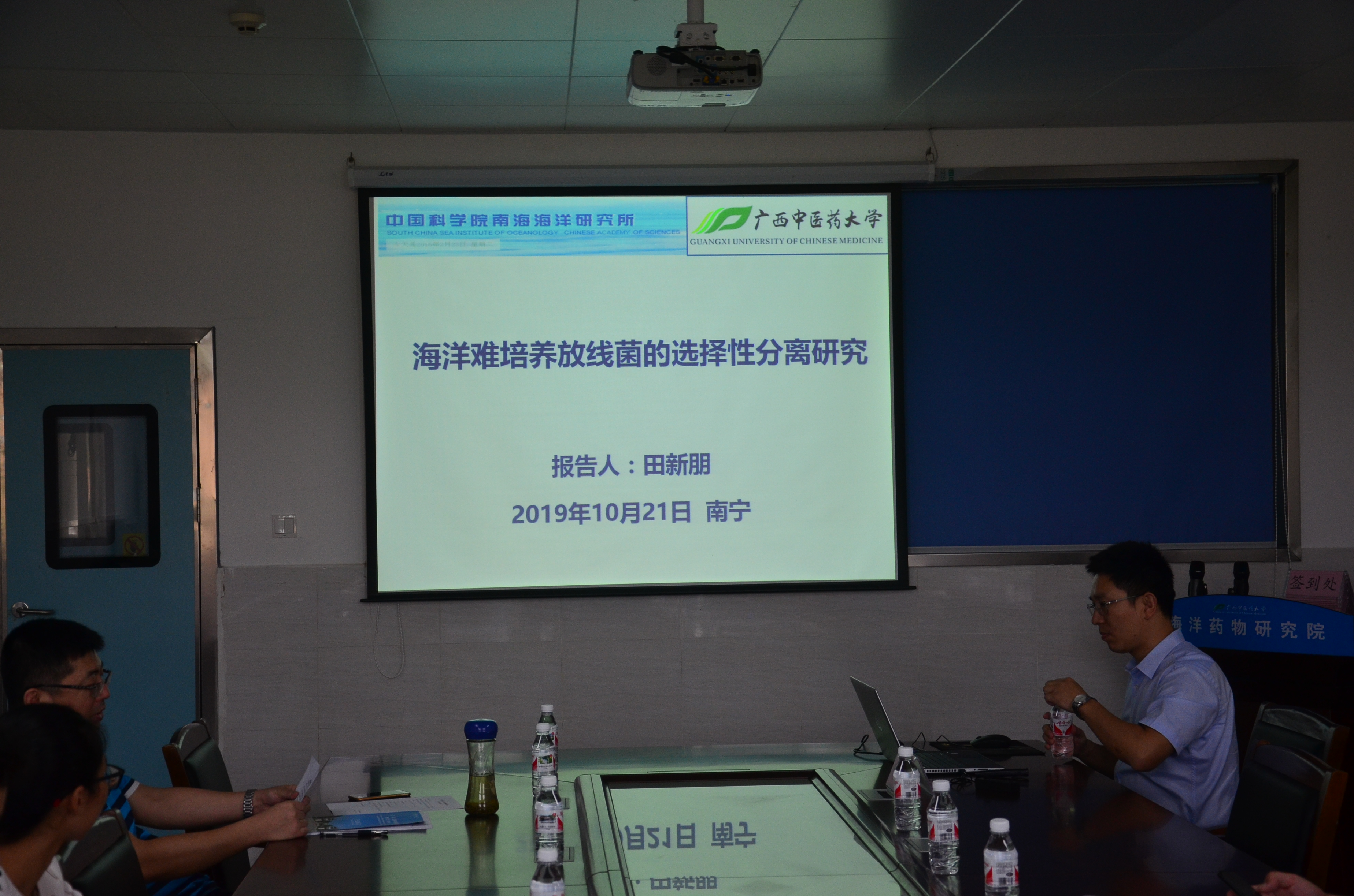 2019年10月21日,为了营造浓厚的学术氛围,加强学术交流,拓展学术领域,海洋药物研究院特邀请中国科学院南海海洋研究所田新朋研究员来beat365官网做专题讲座,讲座题目为:海洋难培养放线菌的选择性分离研究。