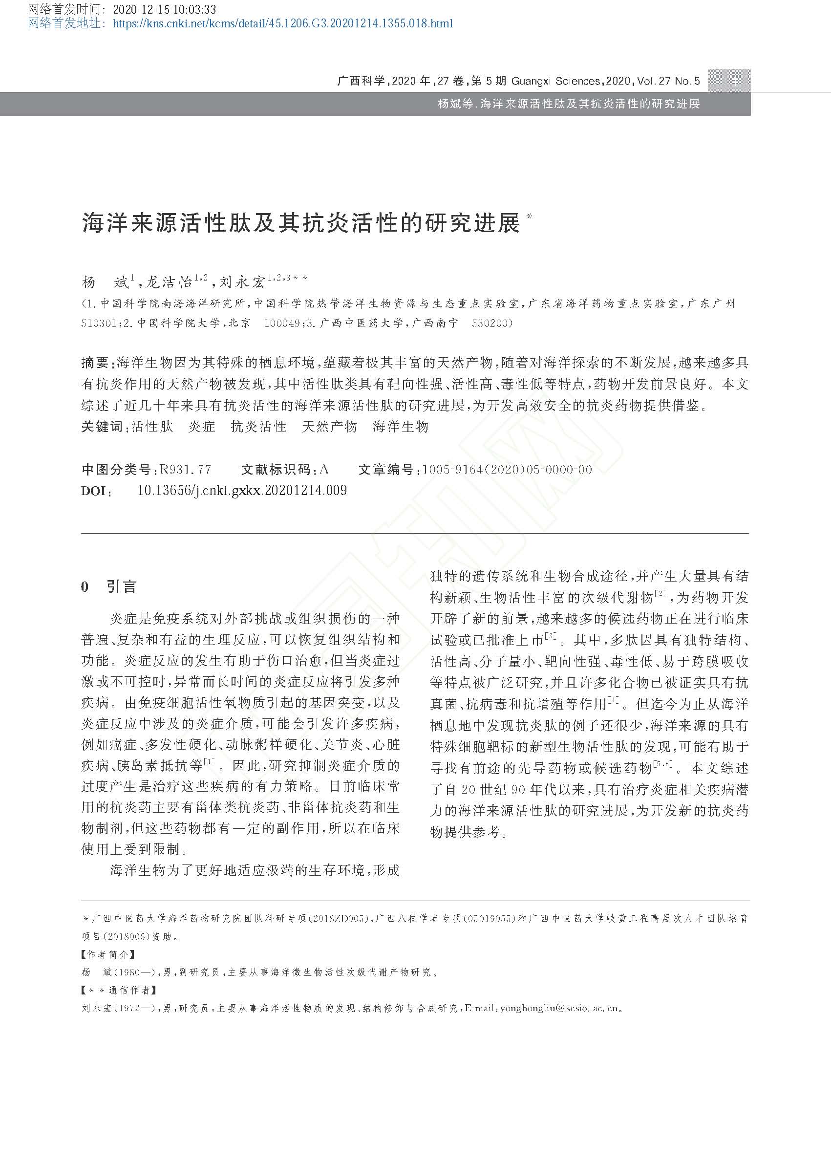 2020-海洋来源活性肽及其抗炎活性的研究进展