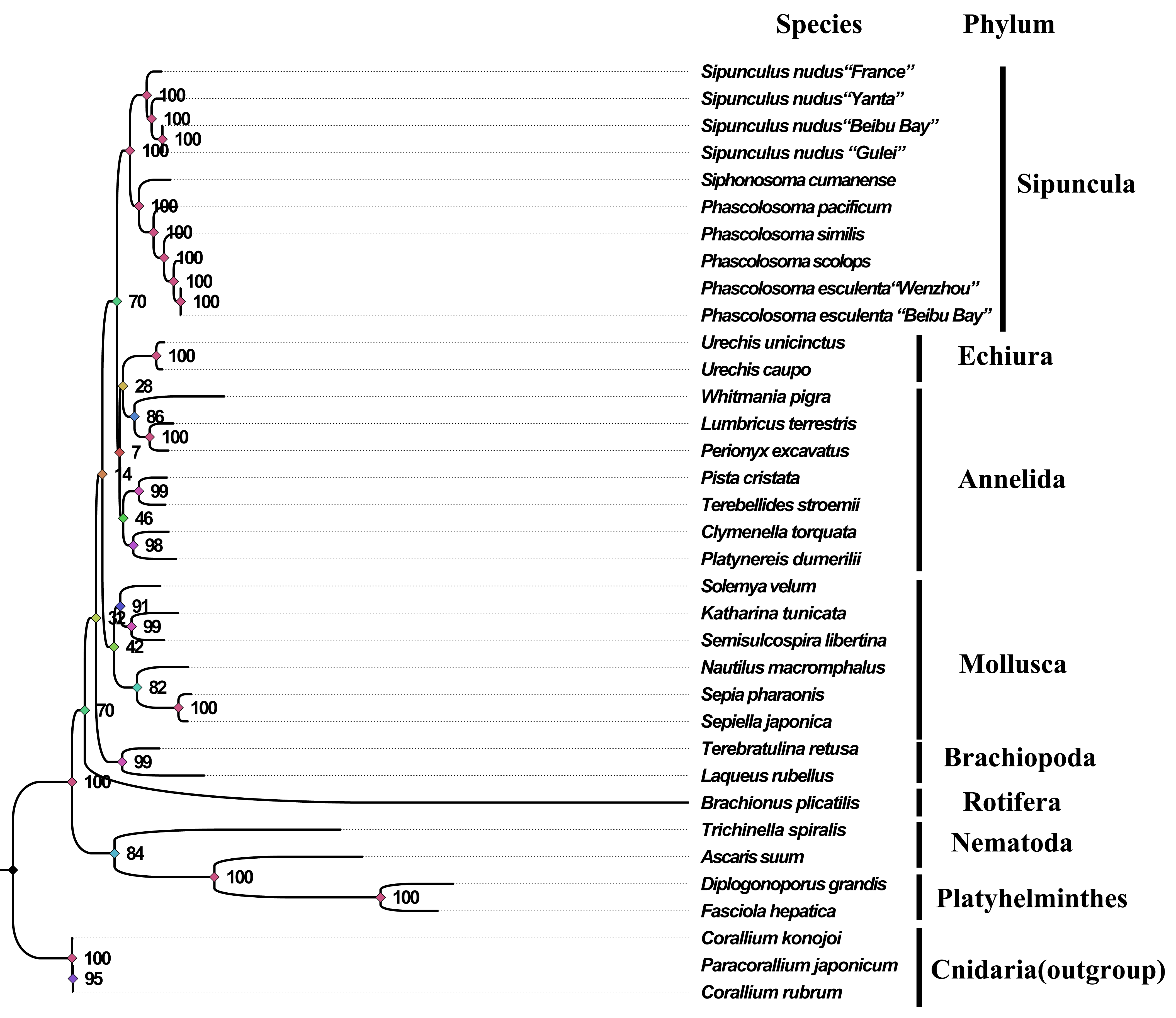 基于线粒体基因组构建的星虫动物系统进化树