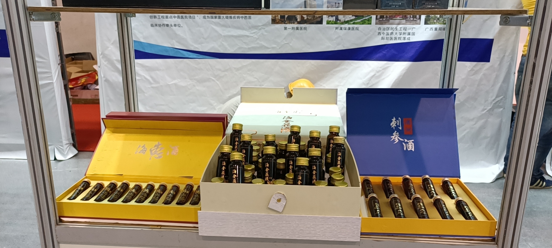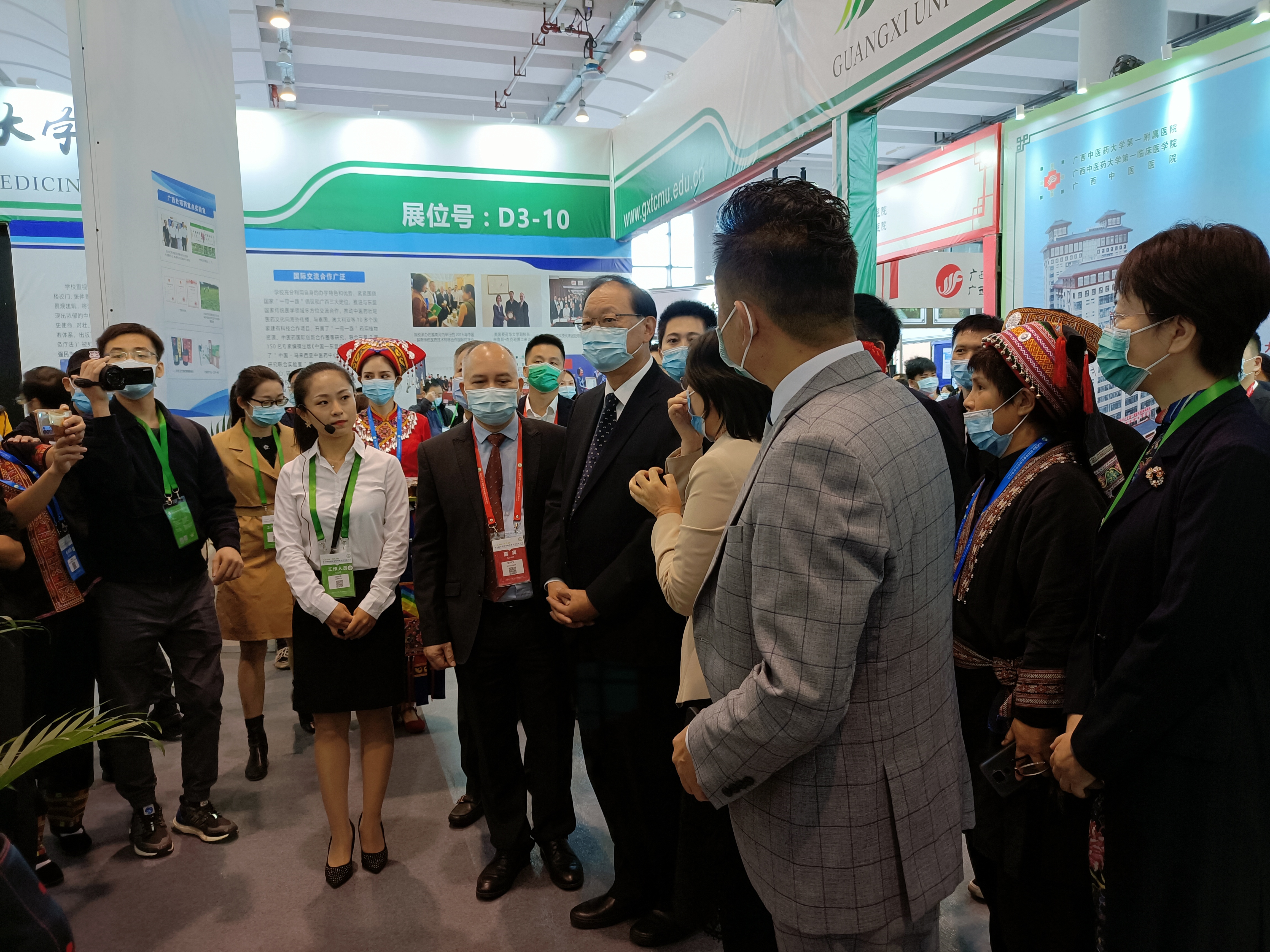 beat365正版唯一入口必一海洋药物研究院受邀参与广西中医药成果展区,参展特色产品有我院自主研发的榄钱酒、榄钱含片贝肉抗疲劳饮品以及与企业合作研发的产品小球藻面膜、珍珠抑菌液、OMEGA LIFT、海金花液及海参酒等。beat365正版唯一入口必一校长姚春、副校长冷静等领导分别向巡展领导及嘉宾详细介绍了学校的科技成果情况,得到了巡展领导的充分肯定,也获得参展观众的好评、点赞。