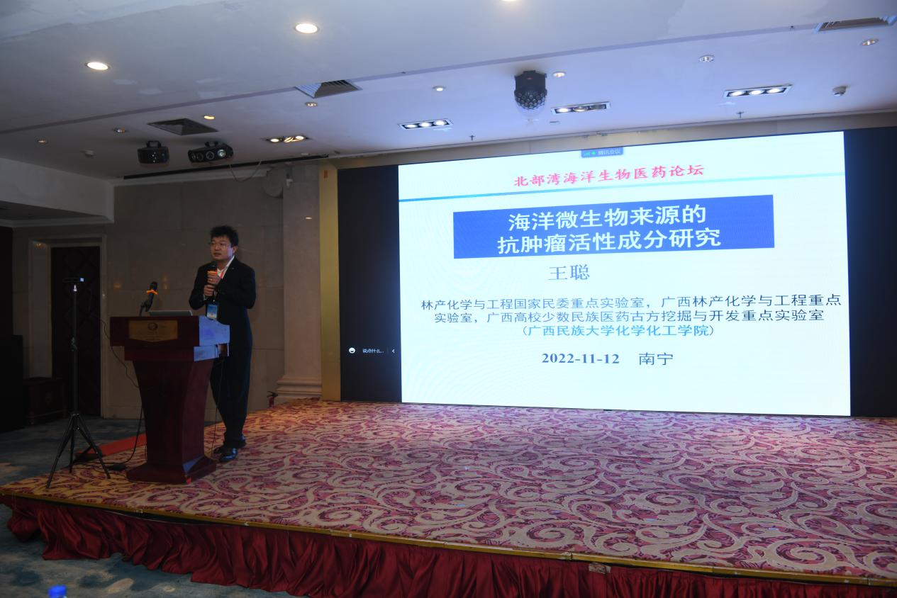 2022年11月12日,“北部湾海洋生物医药论坛”在广西南宁召开。此次论坛中国药学会海洋药物专业委员会主办,广西海洋药物重点实验室和beat365正版唯一入口必一海洋药物研究院联合承办