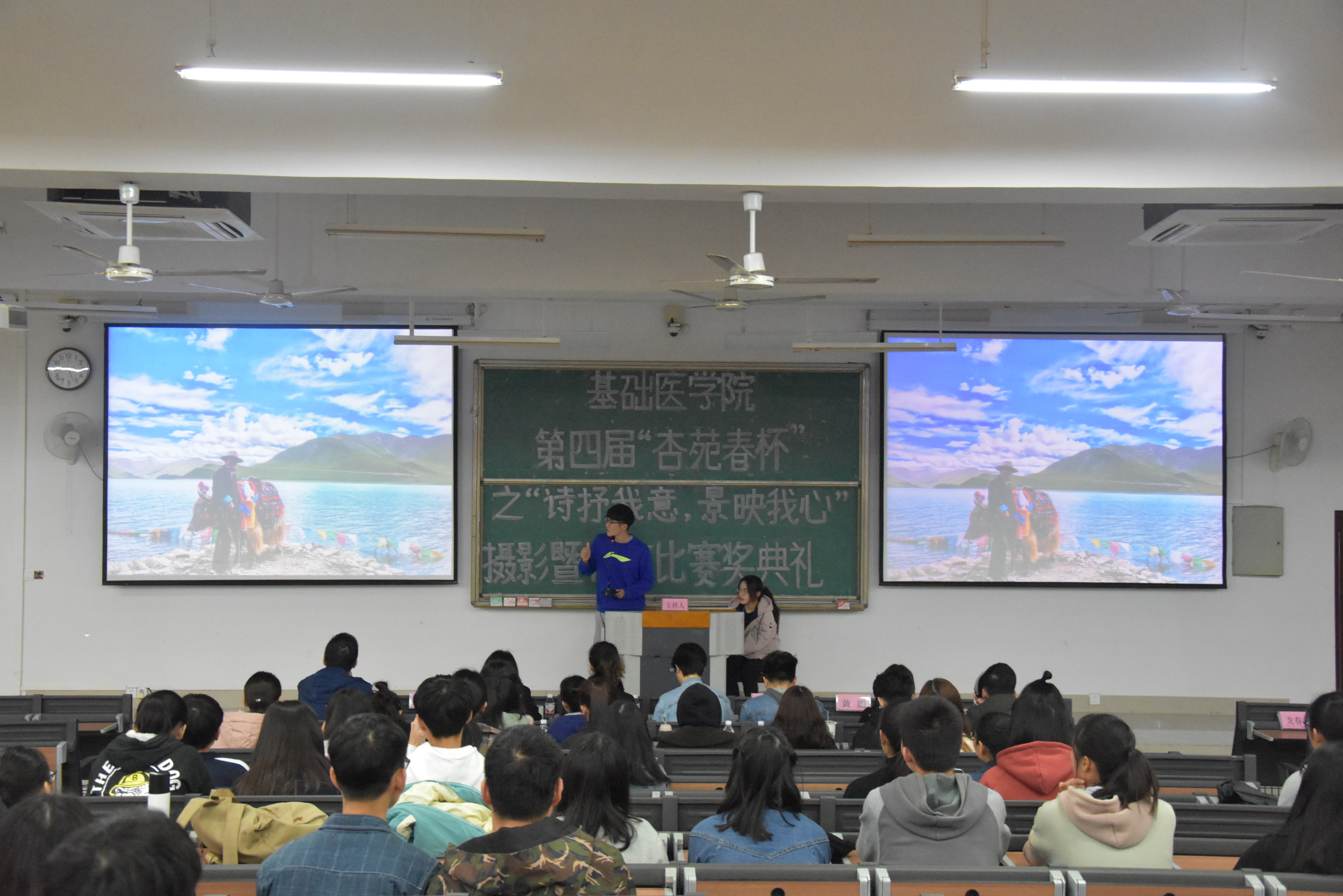 为丰富学院大学生课余文化活动,培养大学生发现美、领悟美的意识,给喜欢摄影、写作的同学提供一次学习、交流、展示的机会,基础医学院特举行第四届“杏苑春杯”之“诗抒我意,景映我心”大学生摄影、征文比赛。决赛于3月26日下午在仙葫校区1栋201教室举行,党委宣传部宣传科科长蒋婷婷,传统文化与艺术教研室副主任熊素玲担任此次活动评委,基础医学院学生工作办公室主任杨丽琴、学院团委书记和卫宾、辅导员黄媚、张翼鹏、陈诚、孔繁磊以及近百名同学参加此次活动。