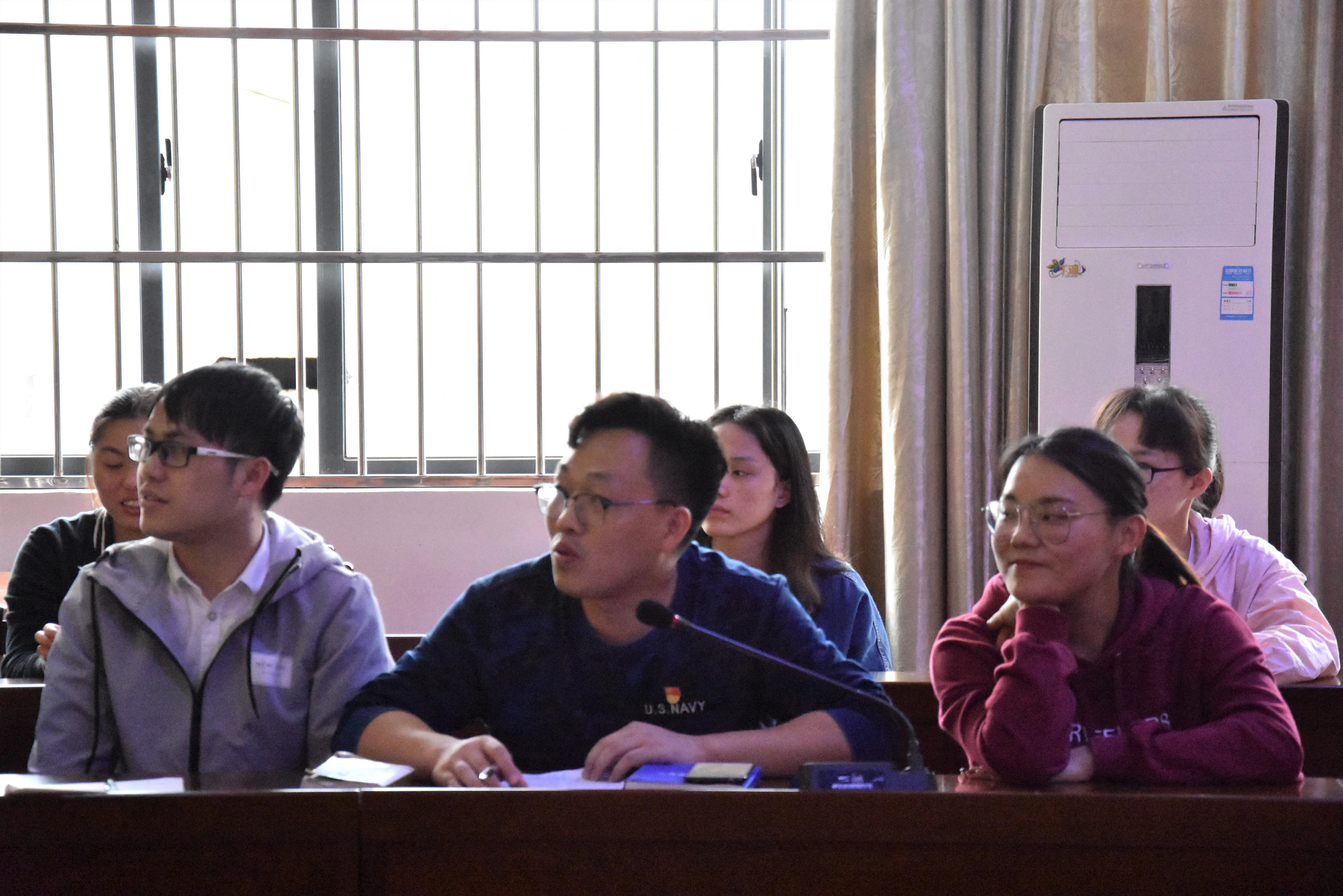 座谈会开始,首先全场起立高唱《中国共青团团歌》。和卫宾详细介绍学校青年先锋代表以及“学院明星”代表情况,组织观看他们的视频,与会同学为这些优秀青年榜样不时发出阵阵掌声。座谈会上,校“魅力干部”陆源鸿分享作为学生干部感受和经历,陆源鸿是优秀学生干部,学习成绩优秀,今年成功保研广州中医药大学;“科研创新先锋”杨志鹏分享大学生科研创新经验;,“学习明星”丁欣瑶分享学习经验;“服务明星”张善枝分享志愿服务经验;“励志明星”庞翠英分享励志求学经验;“科研明星”蒋颖心分享大学生科研经验;“团队明星”代表陈子阳分享开展团队工作经验。和卫宾、黄媚两位老师也在会上进行分享并希望大家不忘初心,牢记使命,勇担新时代责任,敢做新时代弄潮儿,立大志、学知识、练本领、修内气,为中华民族伟大复兴中国梦不断奋发前行。
