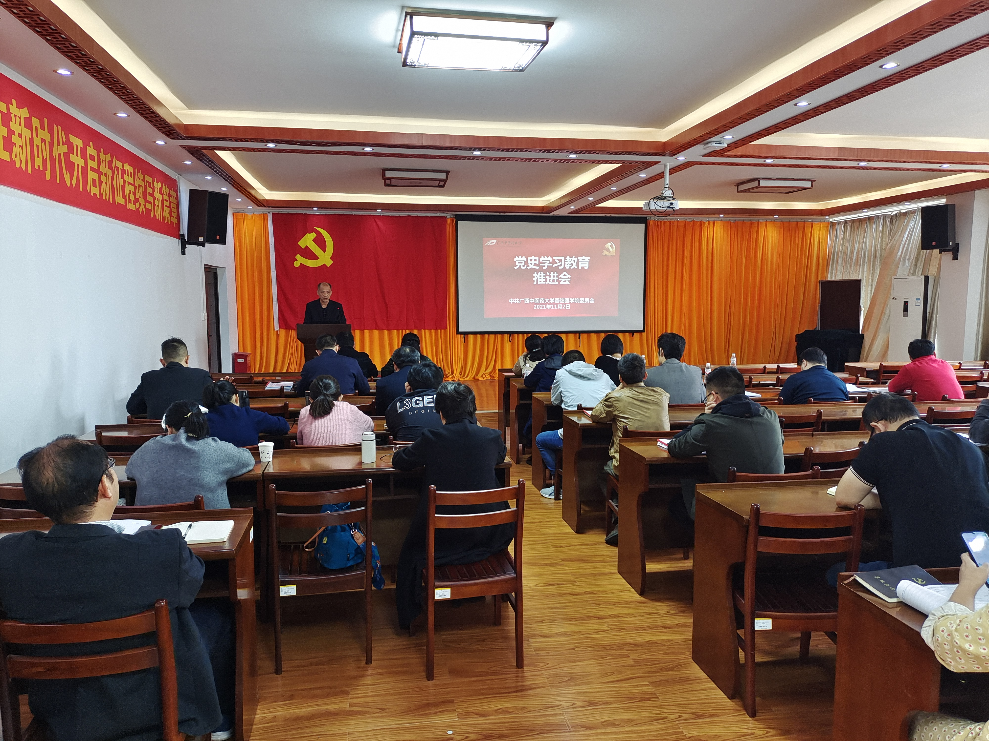 为进一步总结党史学习教育阶段性成果,对下步工作进行部署,11月2日,基础医学院在达道楼A305会议室召开党史学习教育推进会。学院党史学习教育领导小组成员、各党支部委员参加会议。会议由学院党史学习教育领导小组组长、党委书记龚名师主持。