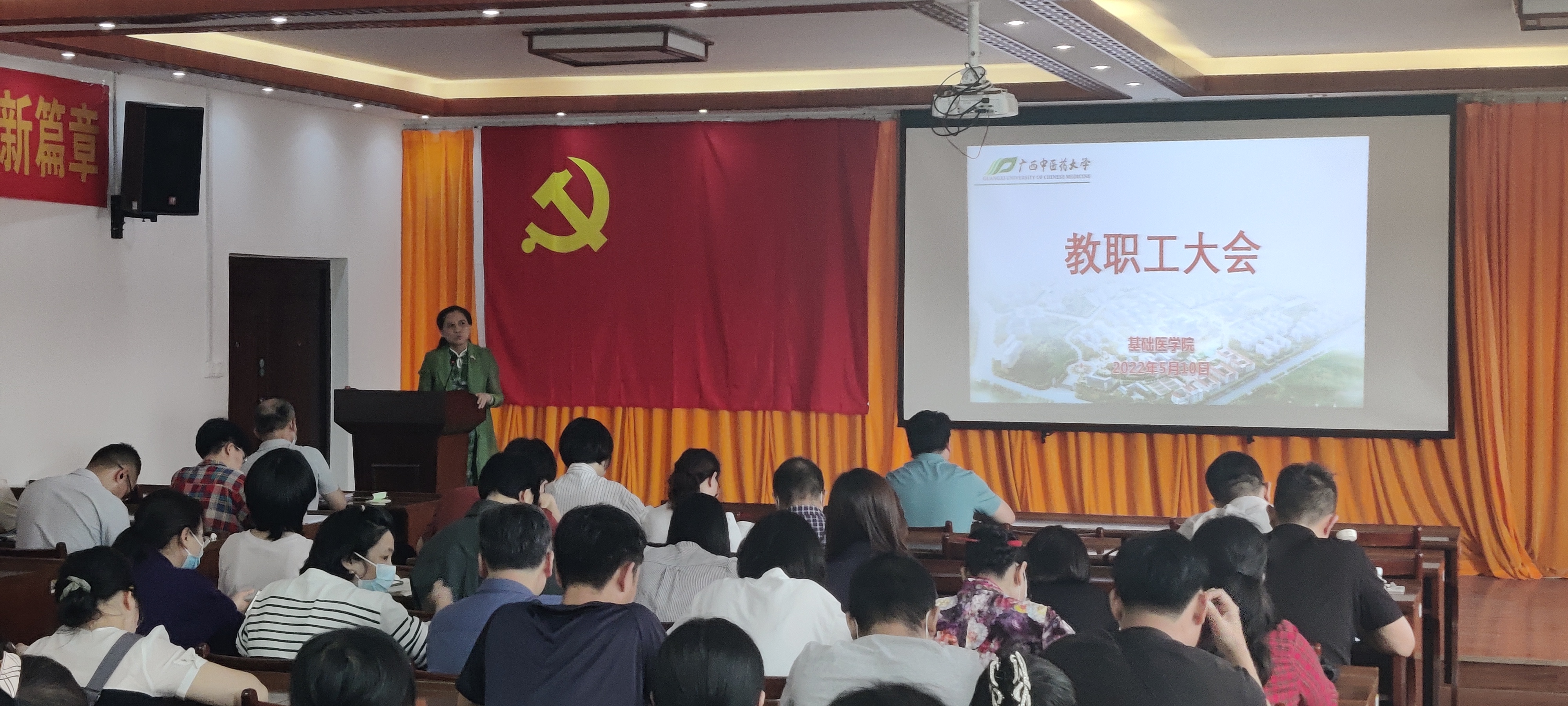 5月10日下午,基础医学院在达道楼A305召开2022年春季学期全院教职工大会,传达学校重要文件精神,展望新学期学院事业发展。学院全体教职工参加会议。