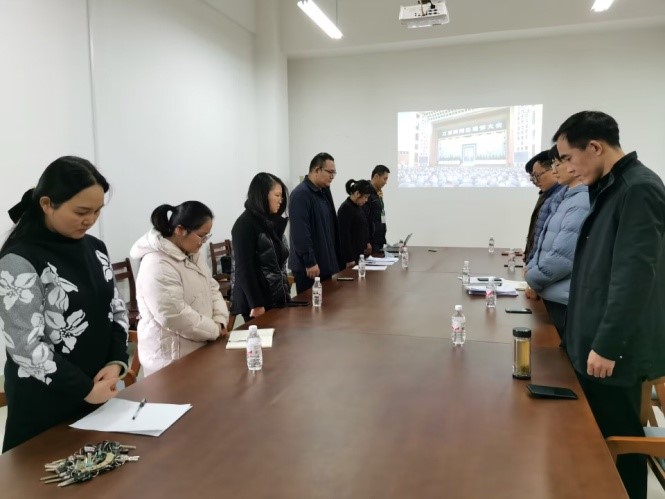会议开始,全体人员在庄严肃穆的氛围中默哀3分钟,悼念敬爱的江泽民同志。