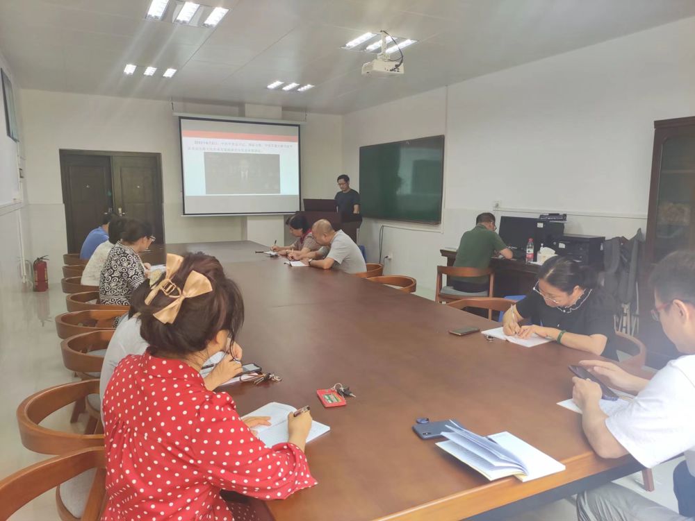 2023年6月13日下午,基础医学院教工第八党支部所辖细胞与遗传学教研室、寄生虫学教研室、医学微生物学教研室、医学免疫学教研室全体教师在达道楼B217进行了第五期思想政治理论学习,教工第八党支部书记吴展帅主持会议。本次学习内容为2023年6月2日,中共中央总书记、国家主席、中央军委主席习近平在北京出席文化传承发展座谈会上的重要讲话。