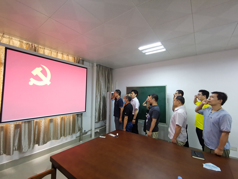 在雄壮的国歌声中,活动拉开了序幕,全体党员起立,唱国歌,然后在黄广琳同志的带领下全体党员面对鲜红的党旗,庄严宣誓,郑重承诺,字字千钧的誓词强烈震撼着在场的每一位党员,让党员们重温了入党时的坚定初心。仪式在全体党员齐唱《国际歌》中圆满结束。