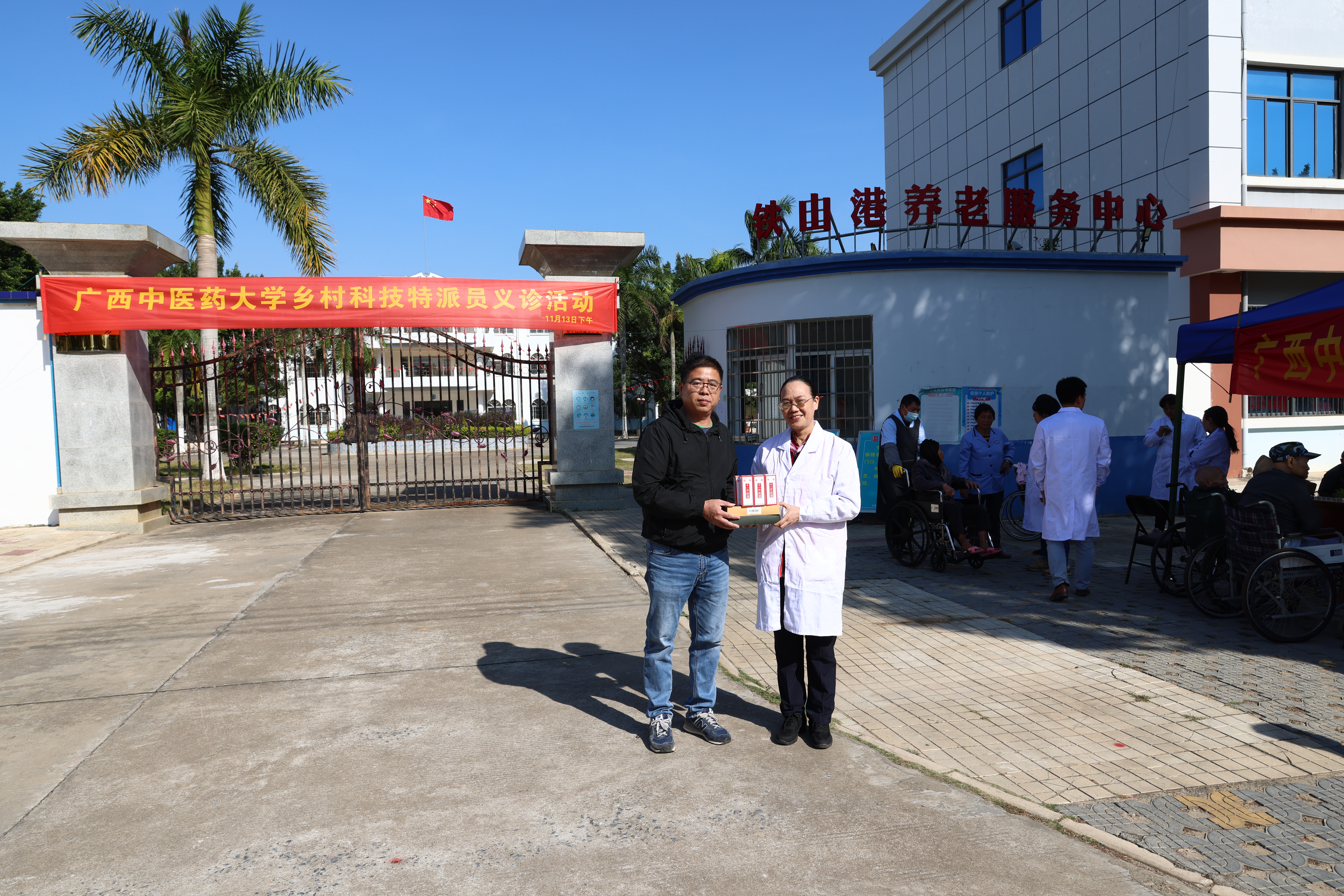 义诊团队向中心赠送医疗物资