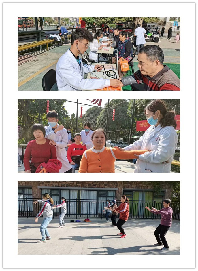 义诊现场,同学们为社区居民量血压、手法按摩、24式简化太极拳的教学、发放冬季疾病预防宣传单以及小礼品等形式。 通过本次义诊,不仅能为社区居民提供基本中医保健服务,科普养生知识,将所学的理论知识与实践相结合,进一步提高同学们的社会实践与操作能力,帮助居民做好健康防护,同时还有利于增加同学们与居民们之间的信任感、亲近感,并通过此类活动展现beat365官网医学生医者仁心、积极为人民服务的意识。同时丰富校园文化生活,给广大入党积极分子提供一个展现自我的空间,倡导更加科学、文明、健康的生活方式,提高人民群众的健康水平!