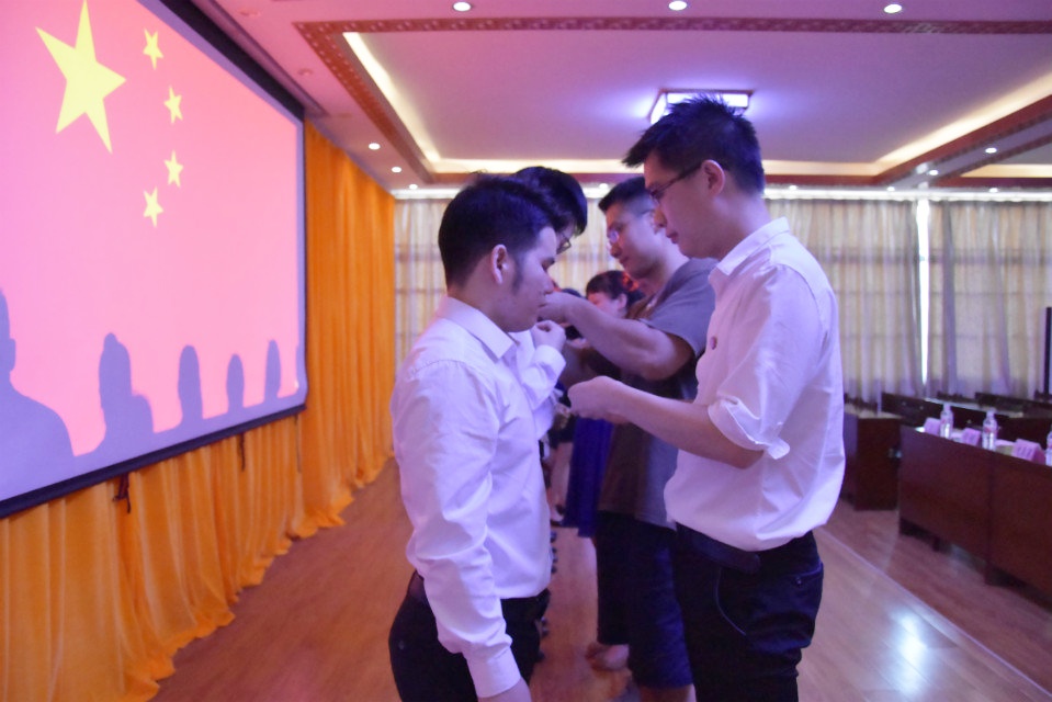 为新党员佩戴党徽