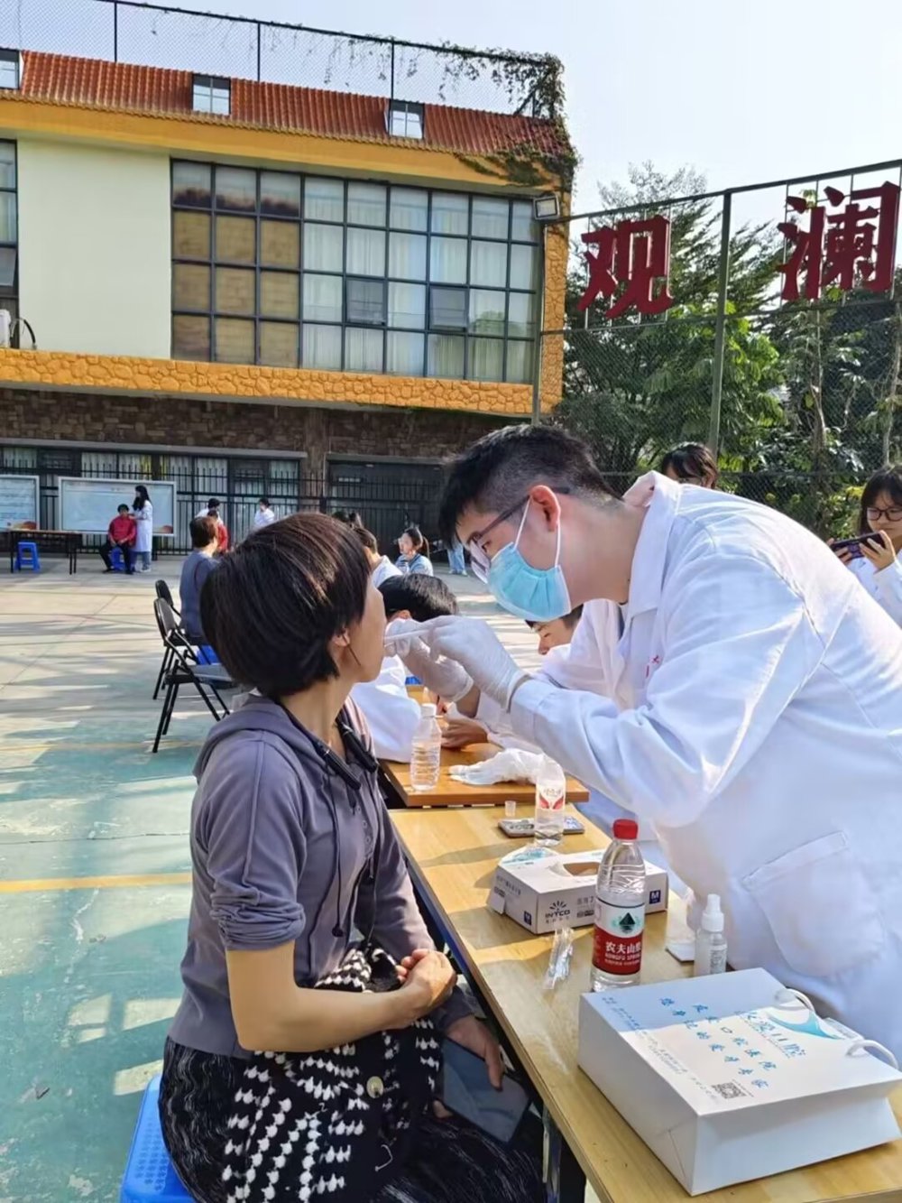 活动现场,志愿者们通过悬挂横幅、发放本次活动的宣传单吸引居民加入到义诊活动中。活动过程中,志愿者们为社区居民提供免费的健康检查,包括量血压等基本检查项目,让居民了解自己的身体状况;为居民提供一些医疗服务体验,如中医按摩、艾灸等,使他们亲身感受到了传统医学的魅力;同时,通过现场答疑和咨询服务等形式向居民宣传了健康小知识,如预防和治疗运动损伤、促进身体康复、缓解疼痛、保持良好的口腔卫生习惯、注意日常饮食规律等等。义诊营造了轻松和愉快的氛围:志愿者们尊重关心居民的身心情况、耐心倾听他们的需求和问题、关注居民的实际医疗需求,最大限度地帮助居民。居民也为志愿者们的热心点赞。最后,各项义诊活动圆满结束,大家合影留念。