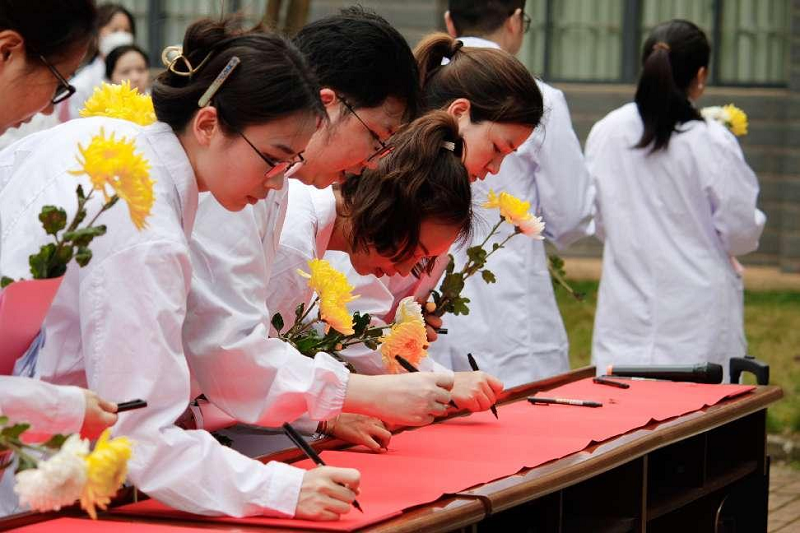 活动伊始,师生们集体重温了医学誓言。随后生理学教研室韦燕飞教授致辞介绍实验动物纪念日的背景和意义:每年的4月24日被确立为“世界实验动物日”,是由英国反活体解剖协会发起、经联合国认可的、国际性的纪念日,旨在倡导科学、人道地开展动物实验。接着,研究生代表和本科生代表分别发表感言,分享自己在进行动物实验时对实验动物的感情及对牺牲的实验动物的感谢。