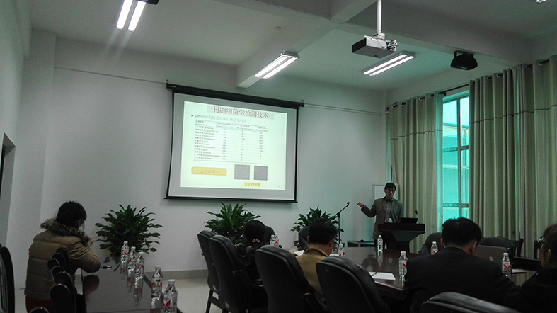 为营造良好学术氛围,提升科研水平,2015年12月30日教研室学术带头人冷静教授特邀中国医学科学院医学生物学研究所代解杰研究员到beat365官网仙葫校区大学生活动中心三楼会议室作“实验树鼩饲养繁殖种群建立及初步应用研究”的讲座。