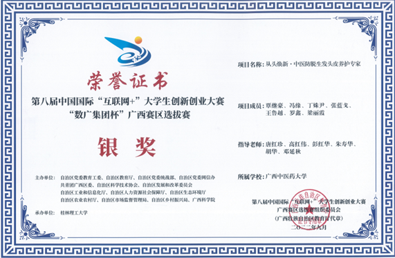 第八届中国国际 “互联网+”大学生创新创业大赛“数广集团杯”广西赛区银奖