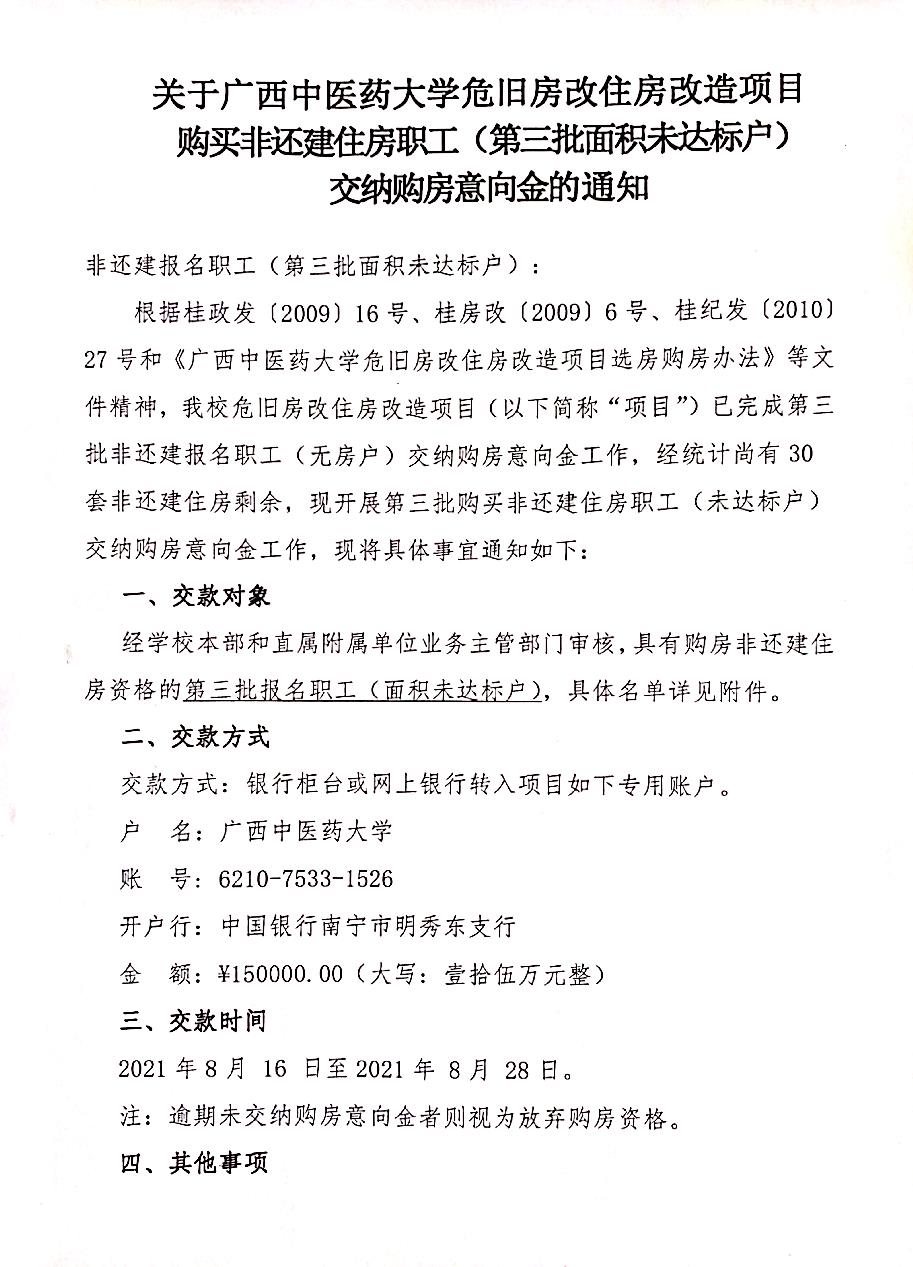 关于beat365正版唯一入口必一危旧房改住房改造项目购买非还建住房职工(第三批面积未达标户)交纳购房意向金的通知 作者:项目办 发布时间:2021-07-26 16:57:54 浏览次数: 次 【字体:小 大】 ↓ ↓ ↓ 点击以下图片放大看 : 扫码关注我们 了解最新消息 分享到: 【打印正文】